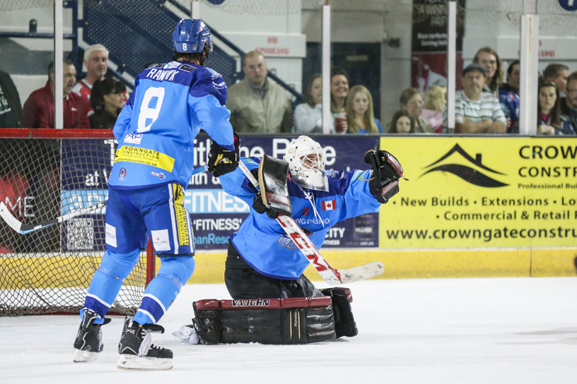 New starting goaltender Brian Stewart is a huge welcome addition. Aggressively cutting down his angles with his hybrid style, he’s going to be a tough man to beat and is just what the team needs when coming down the stretch. A career East Coast leaguer with a couple of stints in the AHL, Stewart has always been above .900 save percentage. Decent head on his shoulders and you can’t be displeased with a shutout on your first EIHL game.