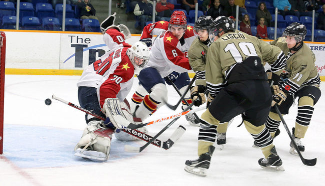 After a phenomenal pre-season showing that saw the Golden Hawks skate to wins against the CCHL’s Brockville Braves and last year’s number two ranked squad, the Carleton Place Canadiens, Trenton was heading into the home opener with bulldozing momentum.